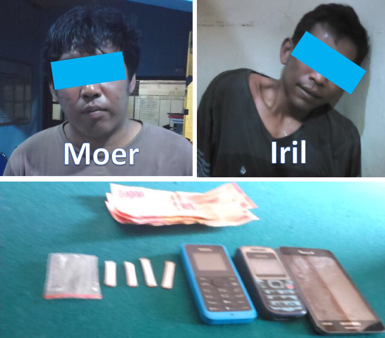 Rabu 02/09/2015 pukul 08.00 Wita dari hasil pengembangan unit reskrim Polsek Kintap berhasil mngamankan seorang laki-laki berinisal Moer, 27 tahun, warga Desa Maluka Bauilin pada saat ditangkap di Jalan A. Yani Desa Pandansari II Kec.Kintap disekitar lokasi PT. Darma Henwa ditemukan narkoba jenis Shabu-shabu sebanyak 2 Paket Kecil yang disimpan dikantong celana Jeans sebelah kanan dibungkus dengan plastik klip transparah dilapis dengan kertas. dari pelaku Moer kemudian didapat informasi tentang asal kepemilikan barang haram tersebut dan berbekal informasi dari pelaku Moer jajaran Unit reskrim Polsek Kintap langsung melakukan penangkapan kepada Pelaku Iiril, 29 tahun warga Jl A.Yani Desa Pandansari II Rt 07/01 Kec.Kintap Kab.Tala dari tangan pelaku Iril ditemukan 2 paket besar Narkotika jenis Sabu serta beberapa barang lain yang digunakan pelaku dalam melakukan kegiatan transaksi Narkotika.